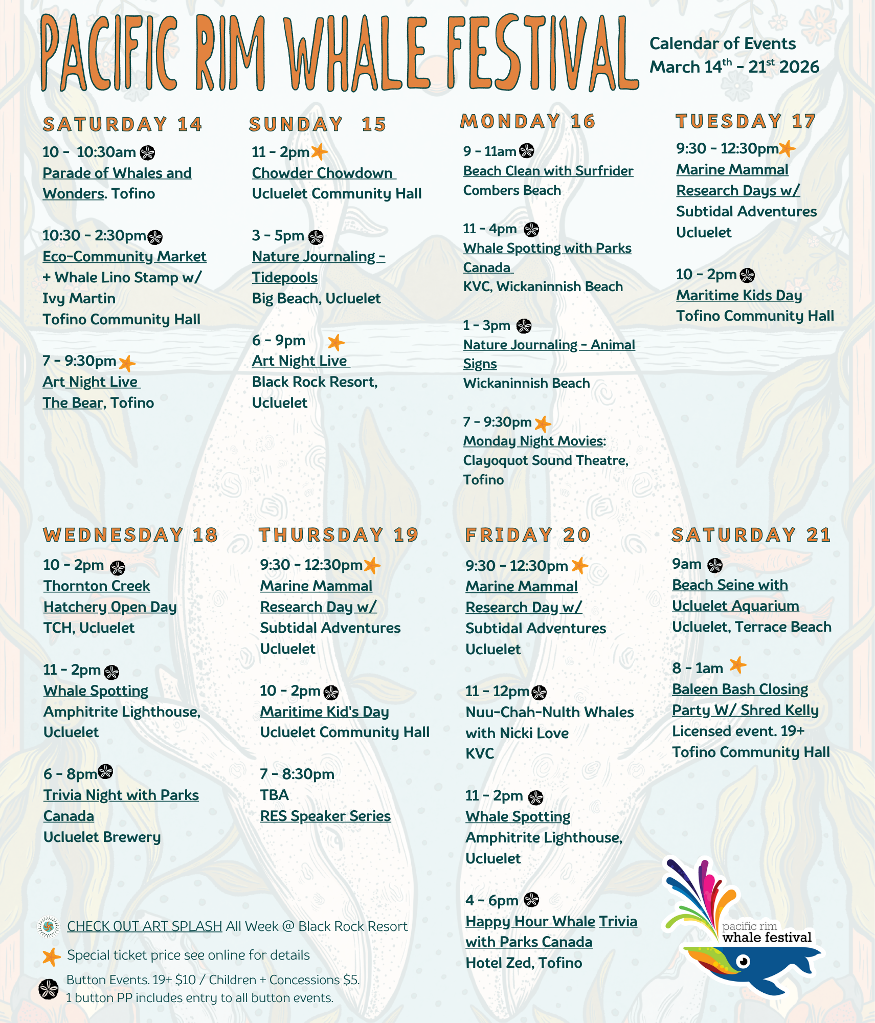 The Pacific Rim Whale Festival has two types of events - Button Events & Ticketed Events.