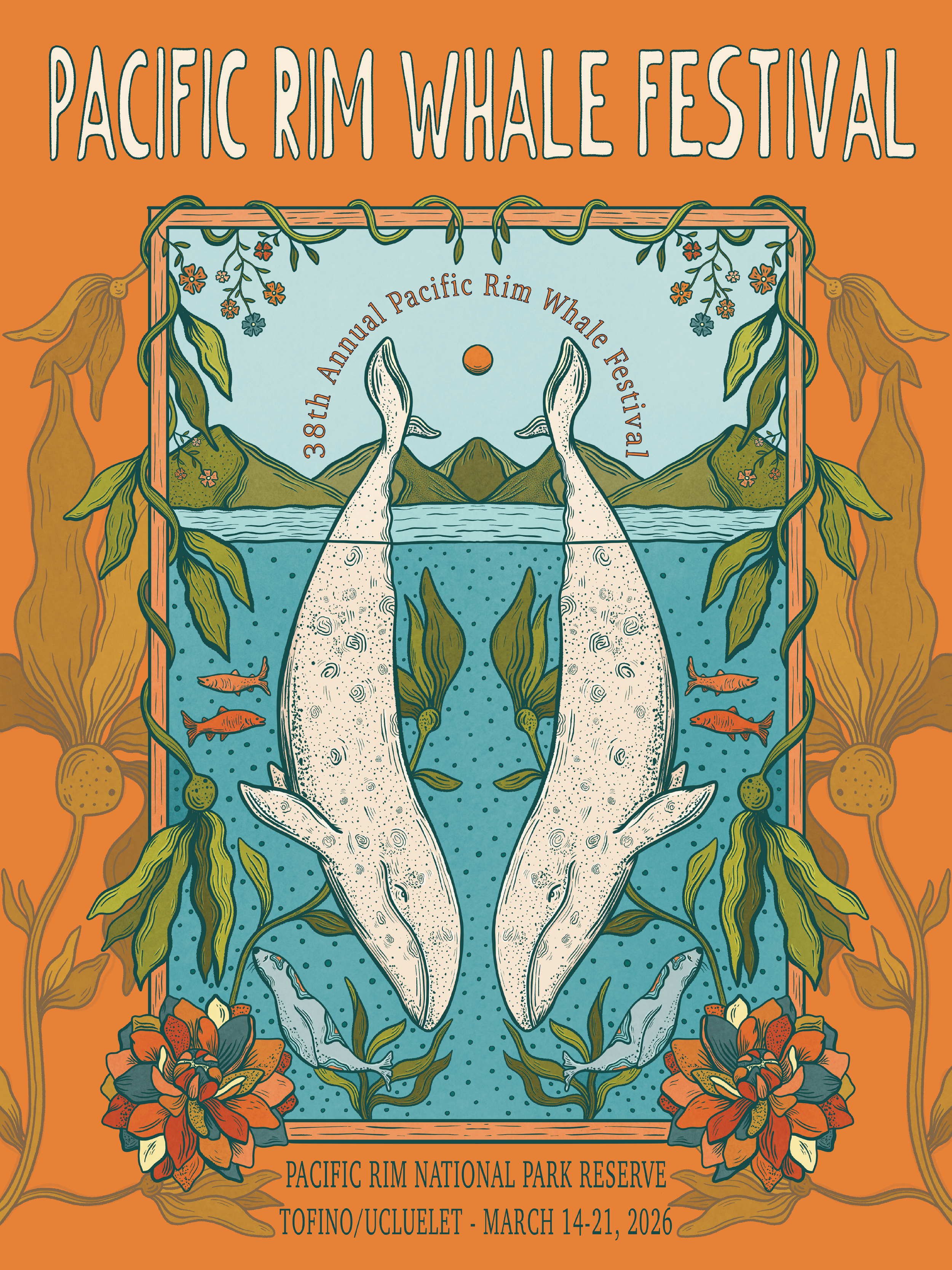 Design Implementation: The commissioned artwork will become the property of the Pacific Rim Whale Festival Society and will be used as the poster image for the Pacific Rim Whale Festival. The final poster will feature festival information (title, dates, etc), and adhere to Pacific Rim Whale Festival Society specifications for final production.